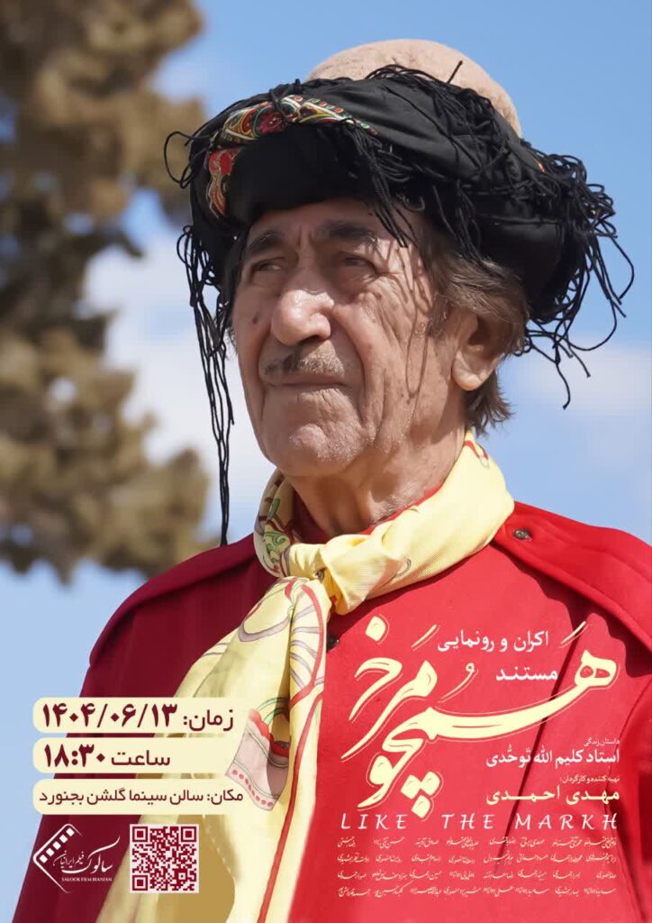 اکران و رونمایی مستند «همچو مرخ» با موضوع روایت داستان زندگی استاد کلیم الله توحدی زمان: پنجشنبه ۱۴۰۴/۶/۱۳ ساعت ۱۸:۳۰ مکان: سالن سینما گلشن بجنورد